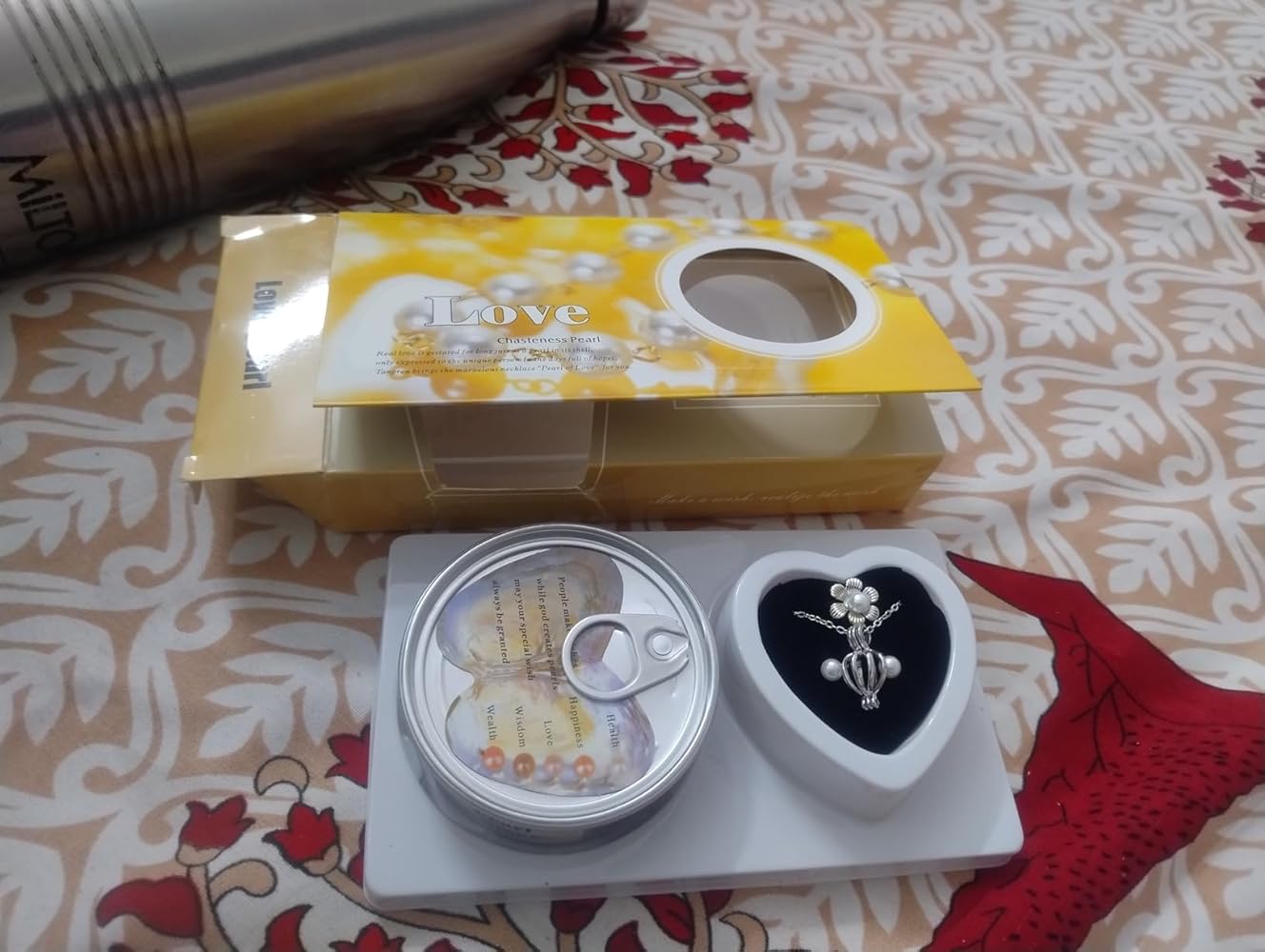 I bought this beautiful valentine Day gift set. It is perfect for gifting. It has beautiful pearl and locket in it. I am very happy that I bought it. It is totally value for money.